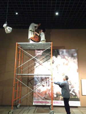 足場を組み、開催中の企画展「桜~野生のサクラいろいろ~」(6月15日まで!)の入り口付近に