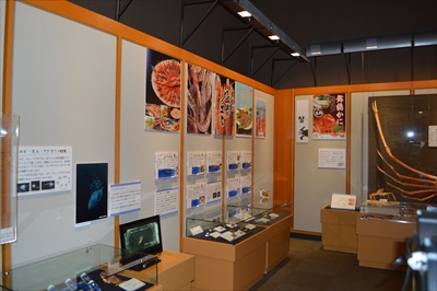 約120点の標本とともに、国内各地の漁協から取り寄せた、エビ・カニの美味しそうなポスターなど、色々なものが展示されています。