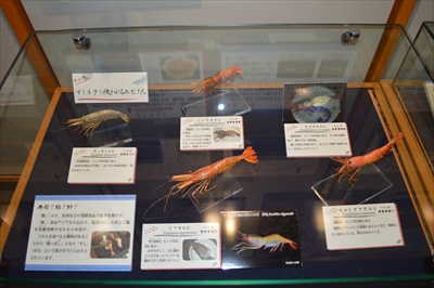 実際に寿司ネタに使われるエビやカニの標本を展示しています。上の写真は、高級な寿司ネタになるエビたちです。美味しそう・・・。