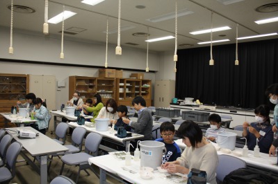ちょっと大変な作業ですが・・・みなさん、ご家族で協力して、楽しそうに火山灰を洗っていました!