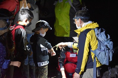 観察会の最後、参加者のみなさんにモリアオガエルの手の吸盤のくっつきぐあいを体験してもらいました。見た目以上に、しっかりと人の肌にくっつくので、みなさん驚いていました。