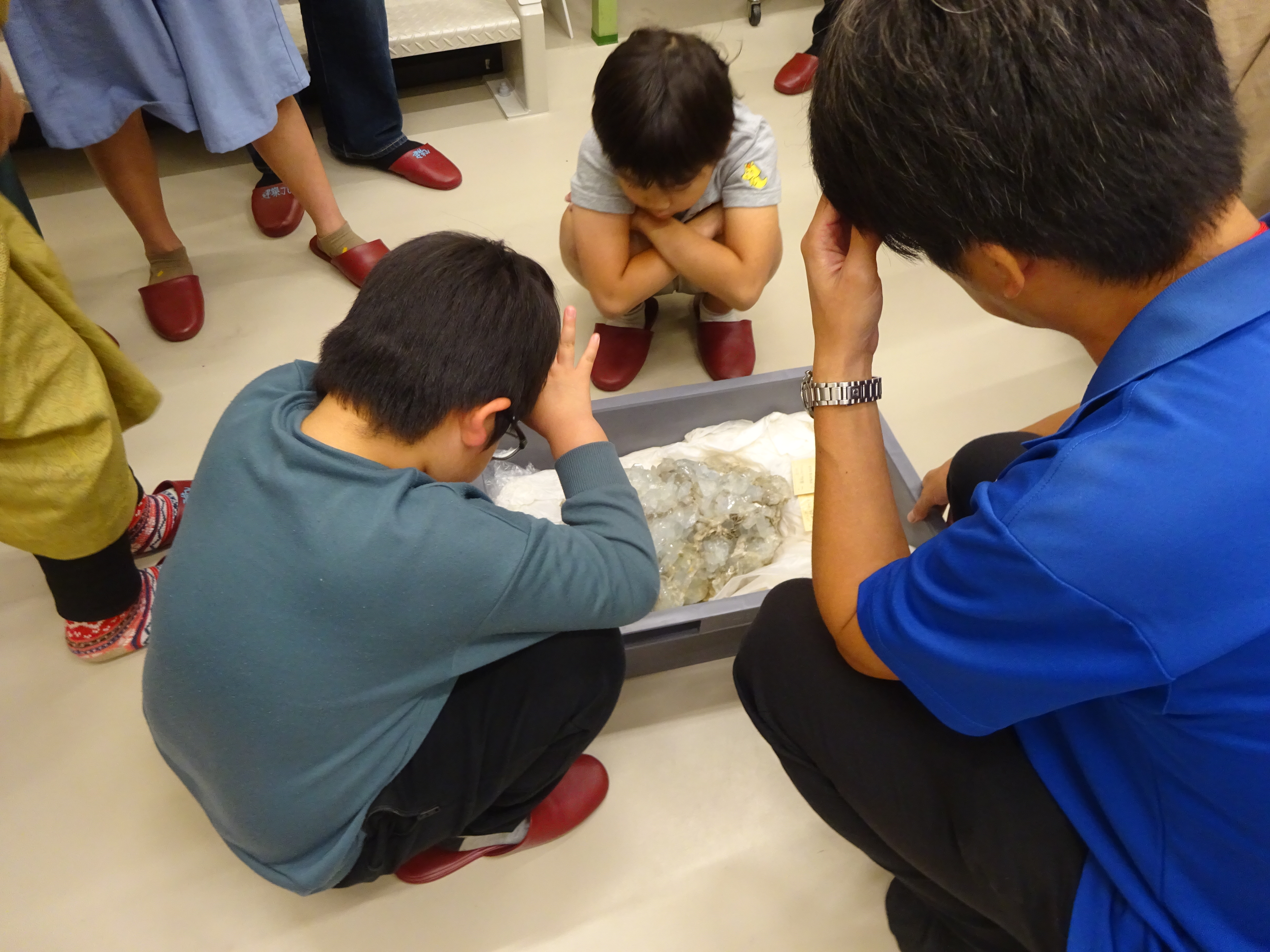 まず前半の講座は、昆虫担当の栗原学芸員による「土の中の小さな昆虫をさがそう」でした。