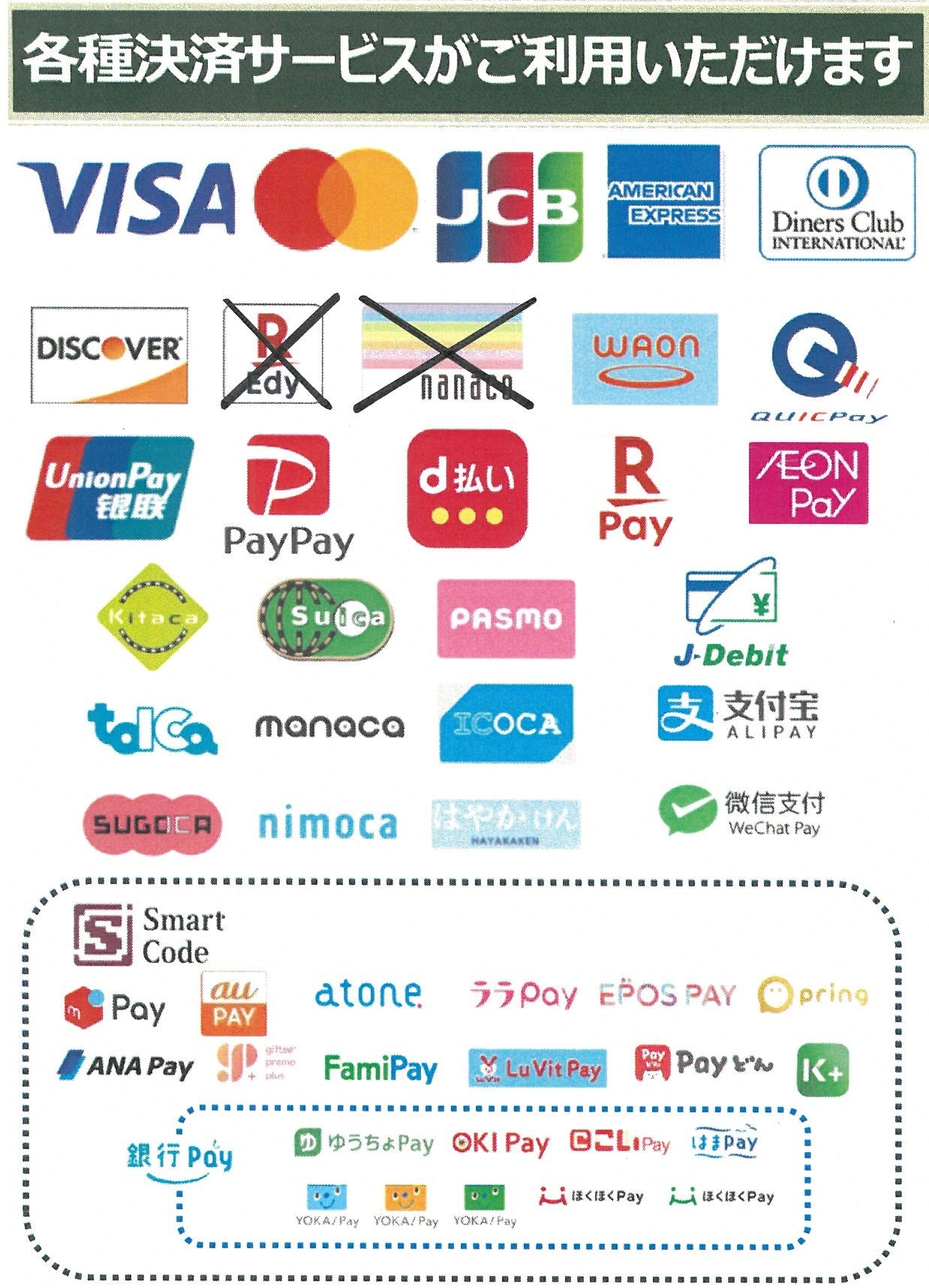 (1) クレジットカード: VISA、Mastercard、JCB、AMERICAN EXPRESS 他