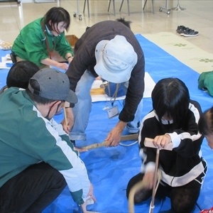 当館では「博物館でやってみよう」の企画で、昔の道具に触れていただくイベントを行いました。